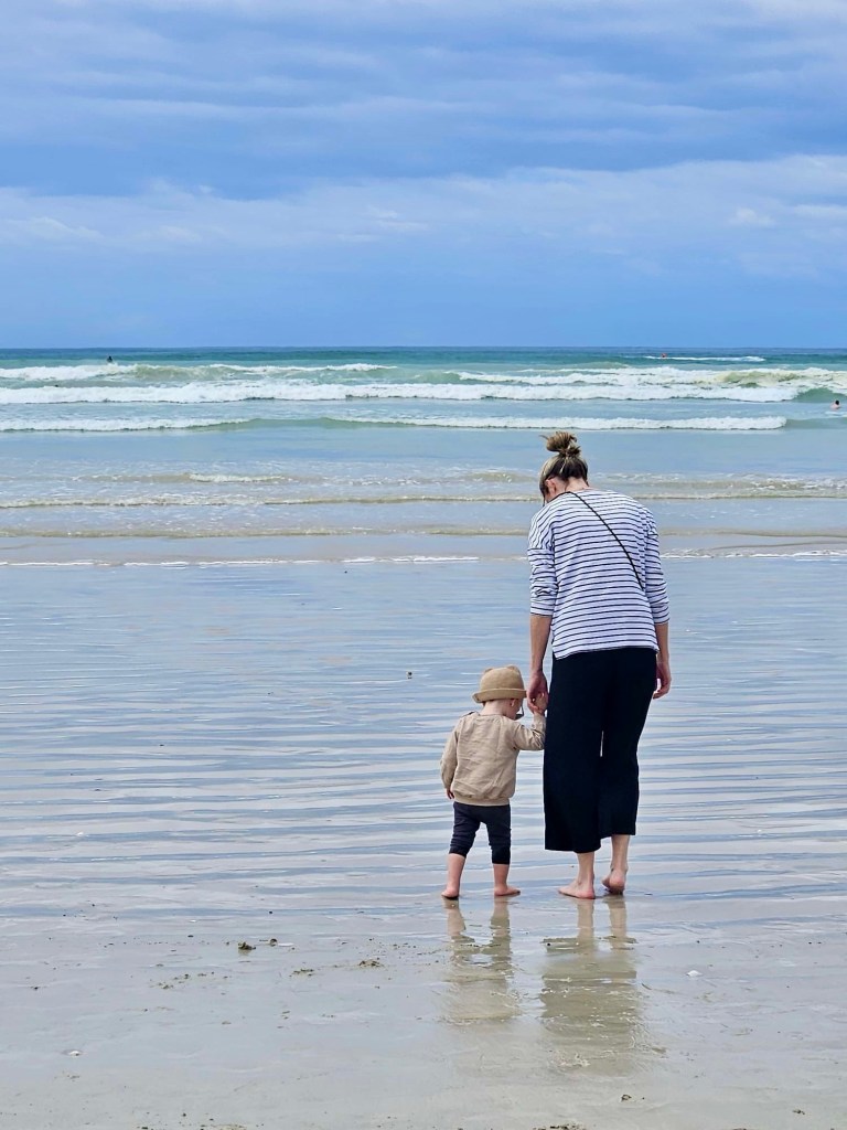 Hier fällt der Sand flach ins Wasser und die Wellen sind aufgrund der Bucht nicht stark, was den Strand auch super beliebt für Familien macht. Während die Kinder im Sand spielen oder im (sehr kalten) Wasser planschen, können sich die Eltern im kleinen Café-Wagen (Seaside Coffee & Snack Bar) am Ende des Strandes mit leckeren Heißgetränken und kleinen Snacks eindecken. Ich empfehle das Gebäck, das etwas an eine Zimtschnecke erinnert, aber dann doch keine ist, sondern irgendetwas Fluffiges, mit Marzipan verfeinertes. Für zwei Kaffees, einen Babychino und zwei süßen Teilchen zahlt man hier ungerechnet ca. 5 Euro. Ich glaube, ich bekomme in den Cafés zu Hause erstmal einen Kulturschock, wenn ich die Preise sehe.