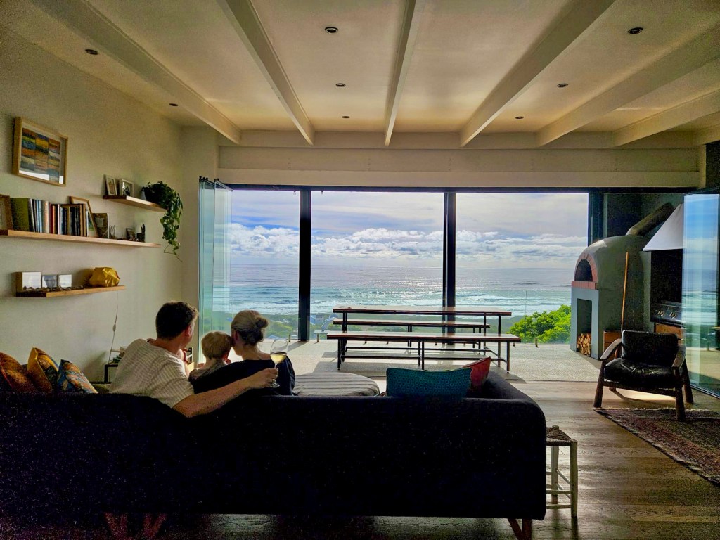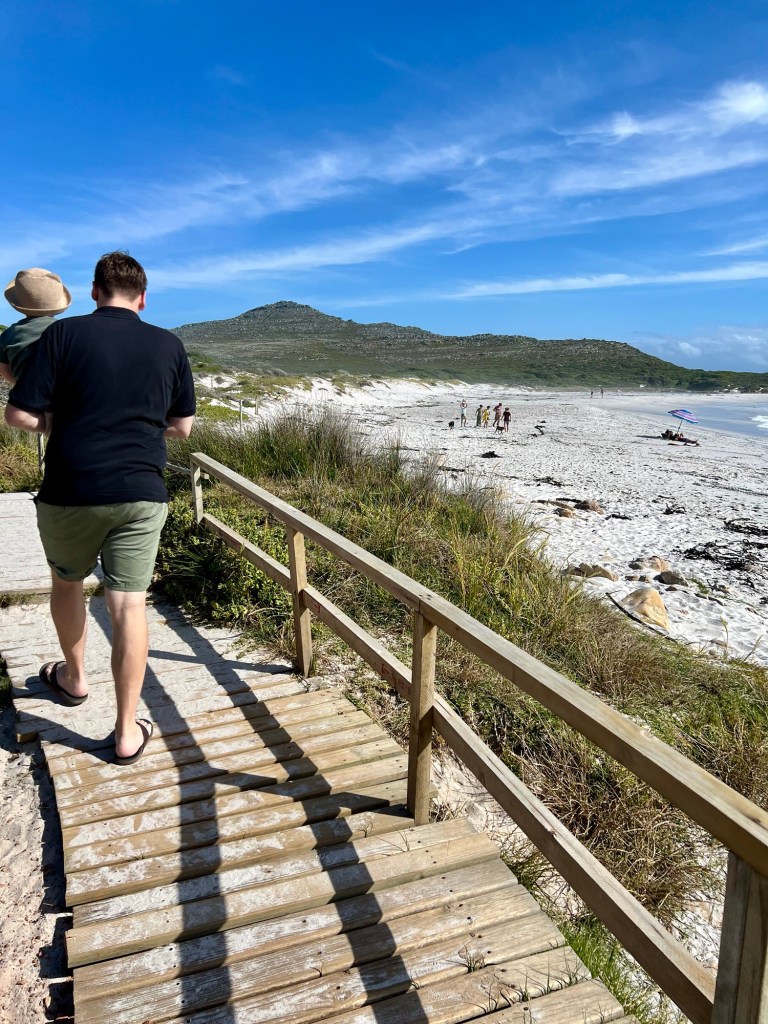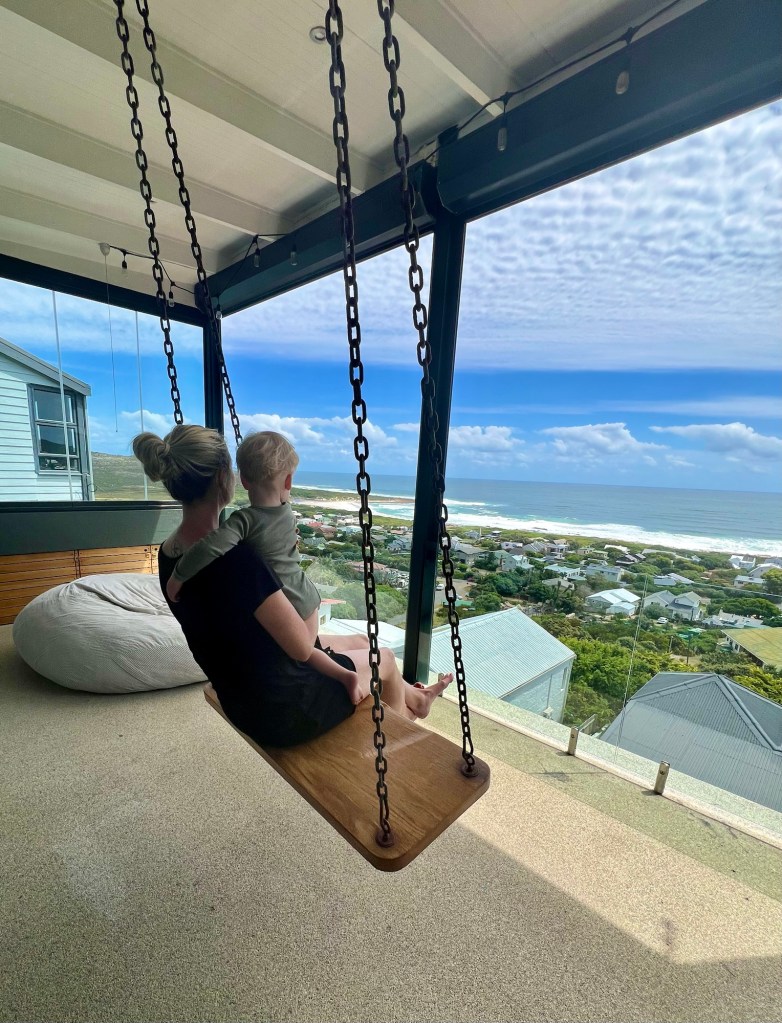 Unsere bescheidene Hütte liegt im kleinen Küstenort Scarborough, in dem viele Kapstädter ein Ferienhaus besitzen und auch einige Aussteiger haben sich hier angesiedelt. Es ist ein Dorf, in dem jeder jeden kennt und wo man am liebsten barfuß durch die Gegend läuft und täglich Yoga macht. Es gibt einen kleinen Strand, ein Village Hub, damit man sich mit den wichtigsten Lebensmitteln versorgen kann, und einen mit vielen kindgerechten Details angelegten Spielplatz, von dem aus man direkt auf unser Häuschen schaut. Da hätten wir das Kind also auch mal allein spielen lassen können haha.