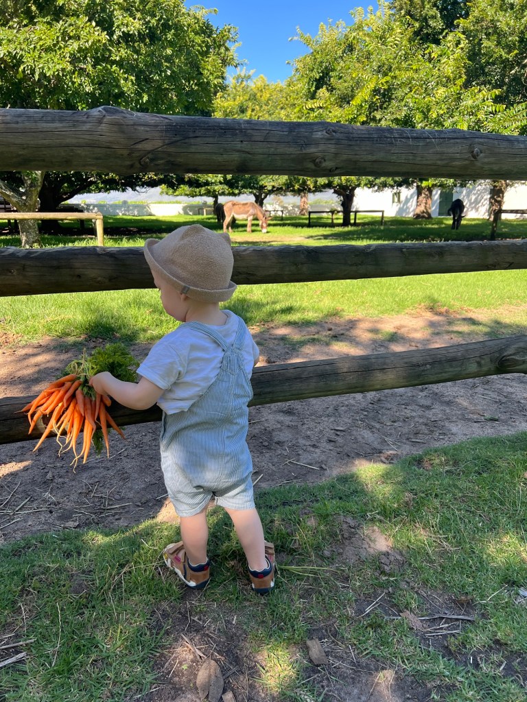 Aber auch Kinder kommen hier, wenn alle reifen Beeren im Mund gelandet sind, auf ihre Kosten. Überall laufen Tiere wie Hühner und Truthähne herum und das Highlight waren die Esel, die man mit Karotten aus dem Farmshop füttern konnte.