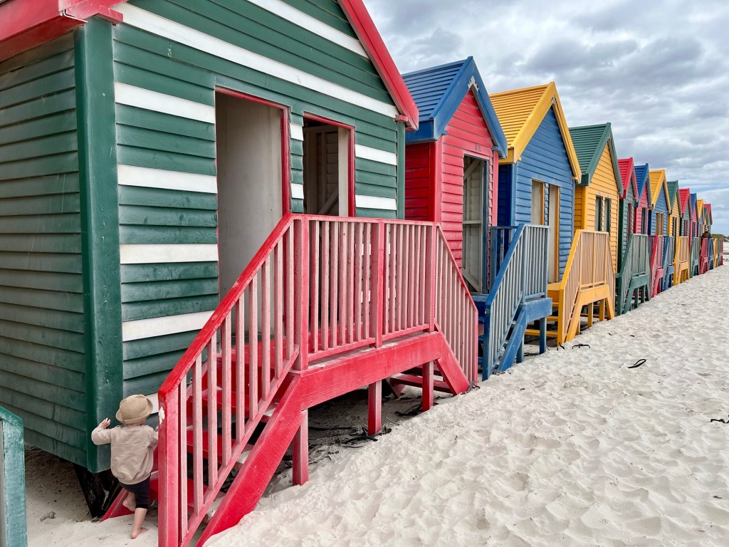 Eine gute halbstündige Autofahrt von unserer Unterkunft in Scarborough entfernt liegt das kleine Dörfchen Muizenberg. Hier findet man das Postkartenmotiv schlechthin: die berühmten bunten Strandhütten.