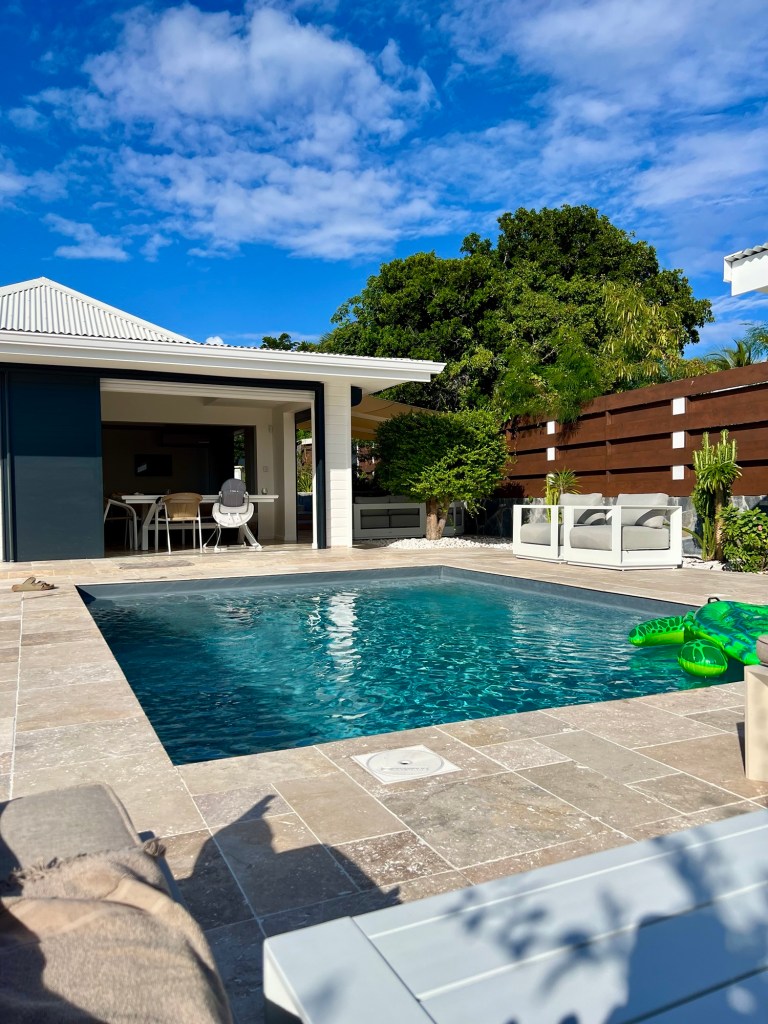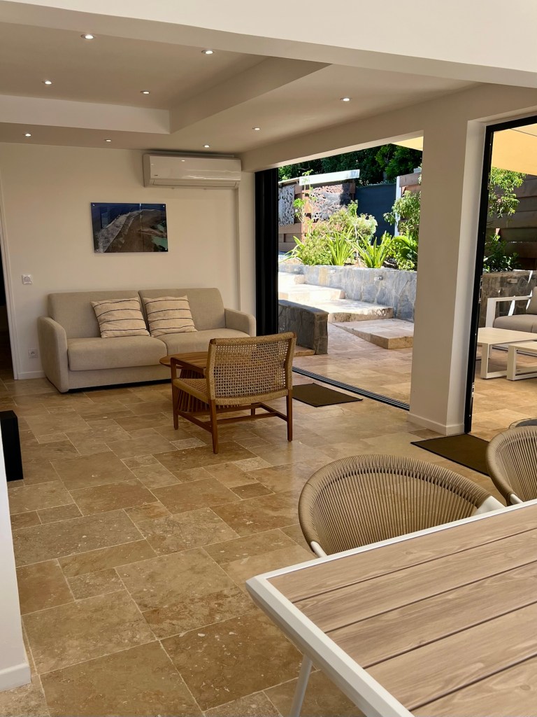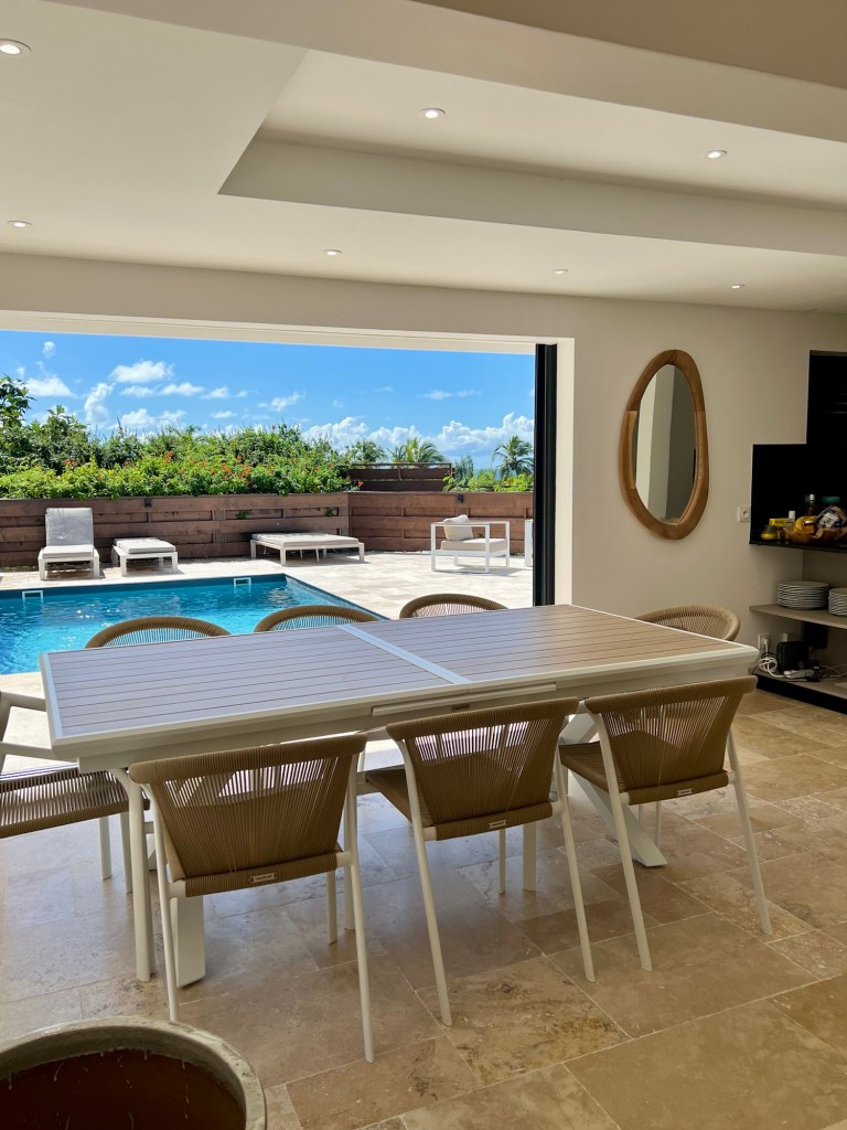 Die Hälfte des Hauses ist offen gestaltet, und so hat man das Gefühl, draußen und drinnen gleichzeitig zu sein. Es ist super schön und komfortabel eingerichtet und es fehlt einem wirklich an nichts. Für den ersten Tag wird ein komplettes Frühstück zur Verfügung gestellt und außerdem eine Flasche des selbst gemachten Rum-Punch ist, für den Guadeloupe bekannt ist.