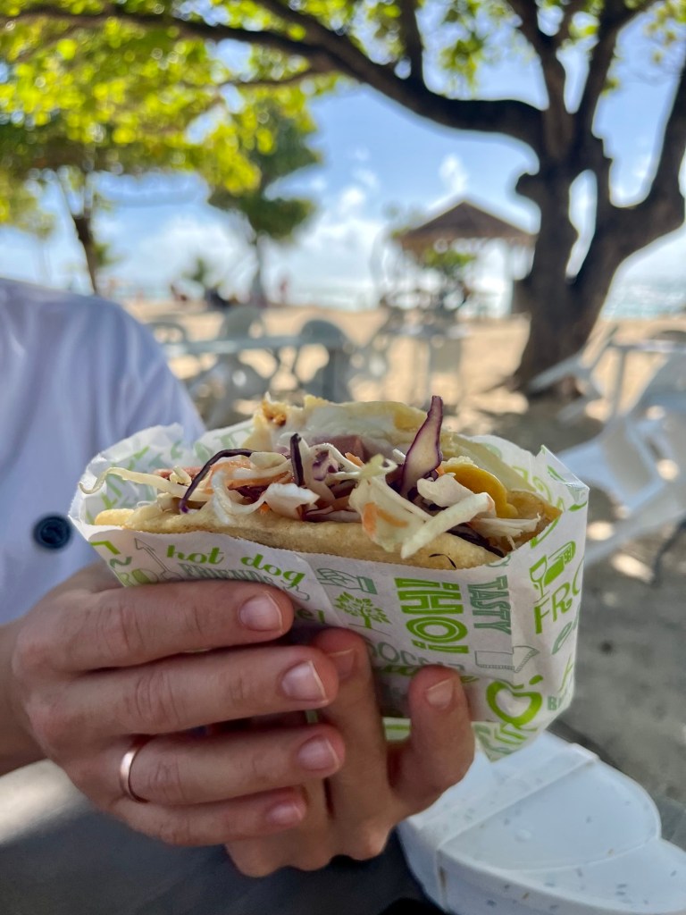 Was man auf jeden Fall probieren sollte, sind die traditionellen Sandwiches, auch Bokits genannt. Sie erinnern etwas an Langos, die man aufschneidet und mit allerlei Leckereien füllt. Man wird also definitiv satt.